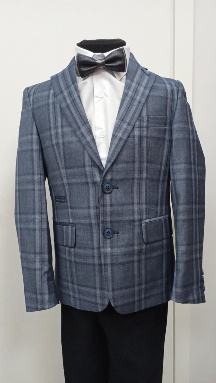 Піджак дитячий West-fashion модель А 138Д сіро-блакитного кольору меланж у блакитну клітинку